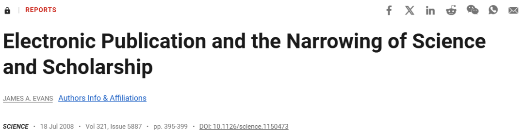 2008 年,他在《Science》杂志上发表了一篇论文,指出随着出版机构走向数字化,研究人员引用的研究类型发生了变化。他们引用的论文更少,期刊数量也更少,而且更倾向于较新的研究。