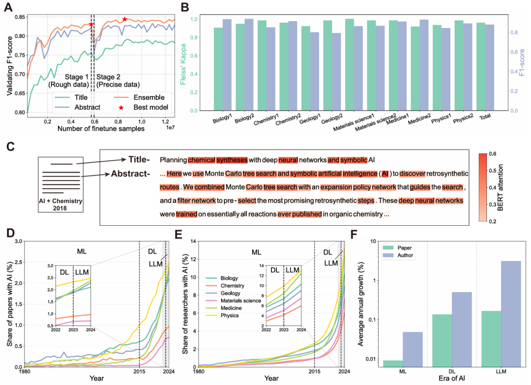 这项研究调查了 1980 年至 2024 年期间在生物学、医学、化学、物理学、材料科学和地质学领域发表的论文。