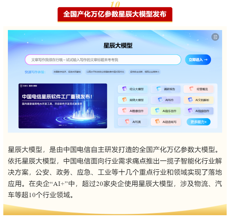 文章来源于互联网:国产AI之光!TeleAI星辰大模型入选央企十大国之重器评选