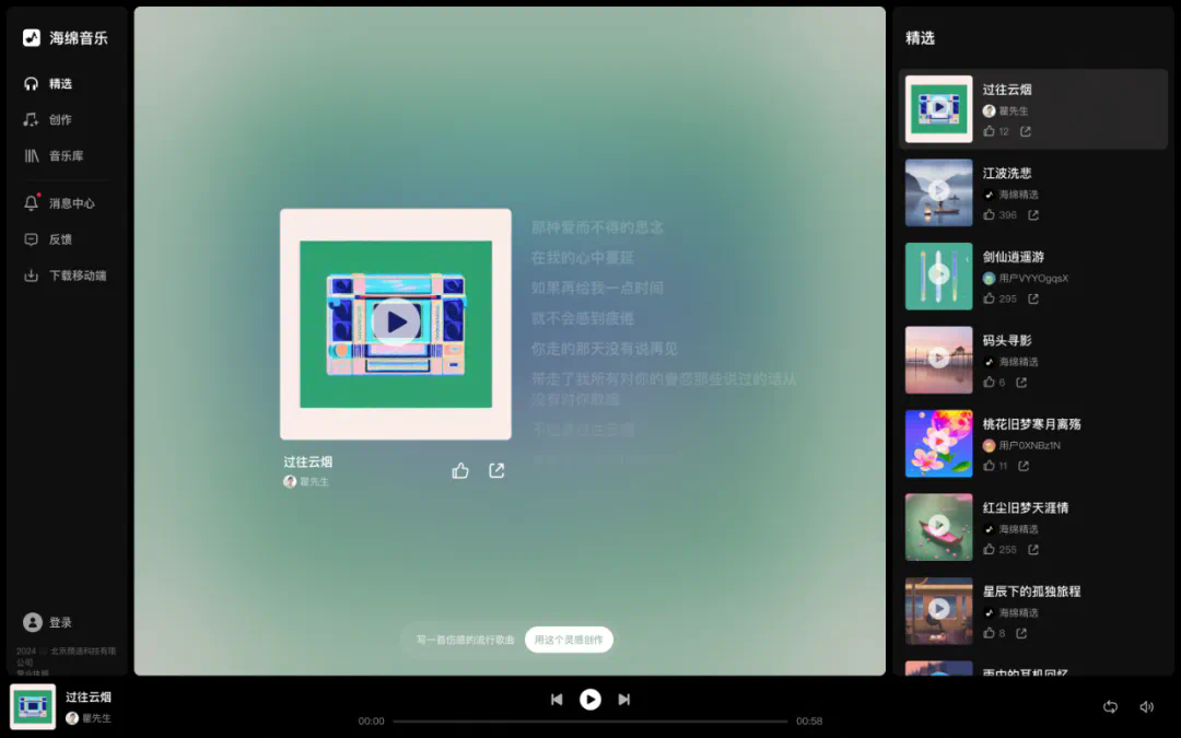 字节的模型一上线就全面接入豆包 App、海绵音乐 App(字节旗下 AI 音乐创作工具),向所有用户开放。用户只需输入简单的提示词,就能得到包含歌词、曲谱和演唱的完整歌曲作品,还内置十多种风格和情绪选项。