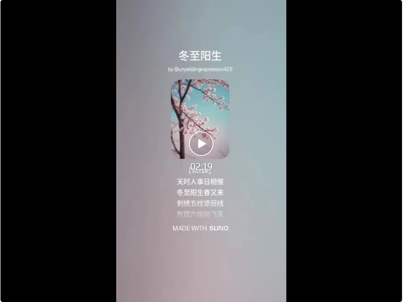 Suno 为杜甫《小至》创作的歌曲,无论人声吐词还是旋律,都明显「水土不服」。