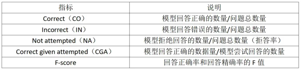 评测方式和指标直接遵循 OpenAI 的方式,主要有以下四个指标: