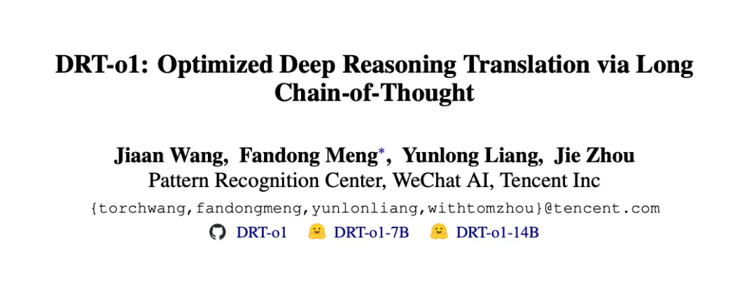 论文标题:DRT-o1: Optimized Deep Reasoning Translation via Long Chain-of-Thought -