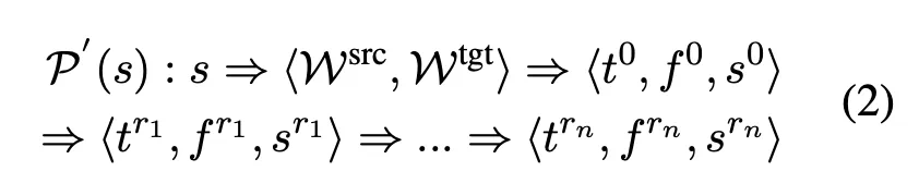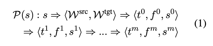 其中,P (s) 表示 s 的多智能体思考过程,m 为迭代步数。为了强调有效的思维过程,没有分数变化的翻译将被删除。也就是说,如果 s^i 等于 s^(i-1)(i = 1,2,…,m),研究者将舍弃 P (s) 中的〈t^i , f^i , s^i 〉,结果为: