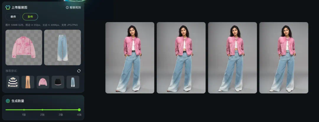 一般来说,都是先有真人模特照片,用 AI 换装也不新鲜。但这个平台能一站式完成模特主体、换装、展示视频的生成: