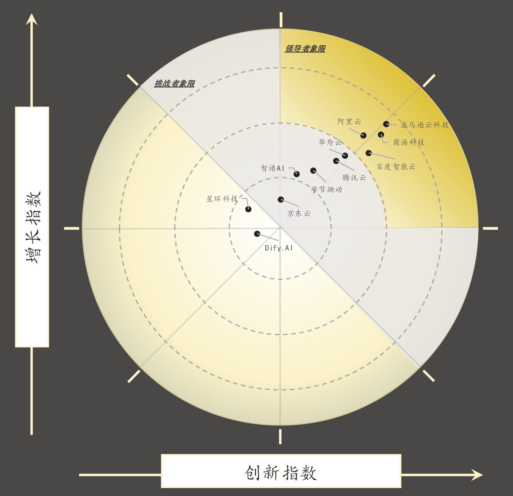 《2024年中国GenAI技术栈市场报告》从创新和增长两个维度、共10个一级评价指标进行GenAI技术栈竞争力分析。