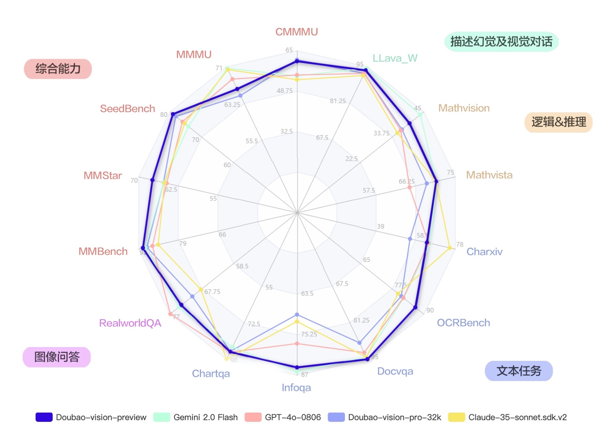 Doubao-vision在主流评测集上能力比肩Gemini 2.0、GPT-4o