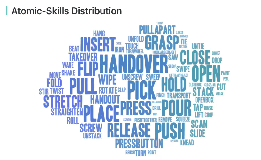 审核标注:对于采集的数据,首先会经过端云两侧的严格筛选,自动剔除不符合要求的数据。此外,专业的审核员会对全量数据进行逐帧审核,确保每一个动作都符合任务标准,并对关键帧和数据特性进行多维度标注。 -