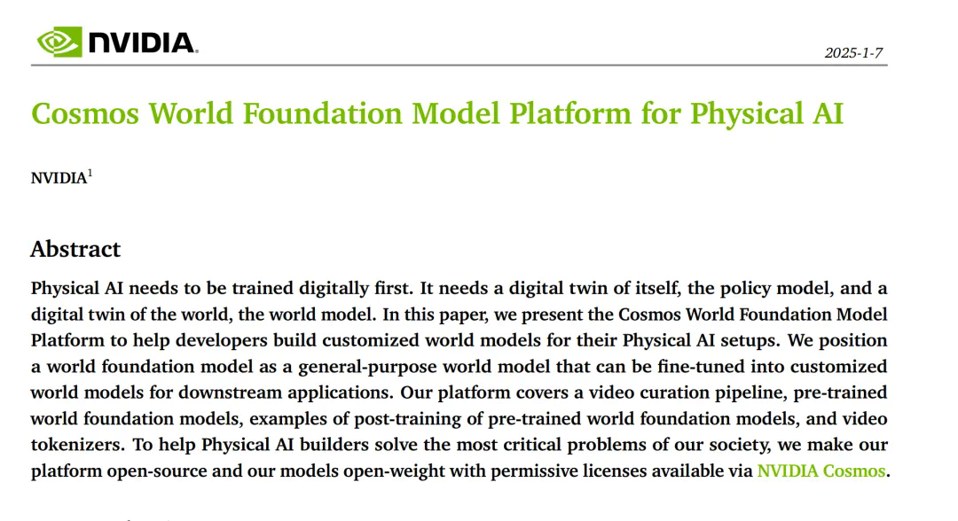 文章来源于互联网:黄仁勋圈重点的世界模型平台是个啥?技术报告全解析,华人贡献中坚力量