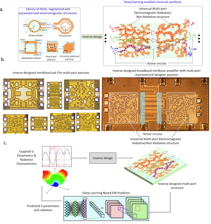 在这里,他们提出了一种在几分钟内合成任意形状的平面多端口 RF/sub-THz EM 结构的通用方法,基于深度学习的正演建模使搜索这种广泛大型设计空间的方法成为可能。