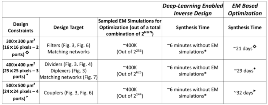 基于深度学习的模型,通过复杂毫米波无源结构和端到端集成毫米波宽带电路的几个示例来演示,所提出的逆向设计方法可在几分钟内生成设计,在开辟一个新的、以前无法进入的设计空间方面产生变革性成果。