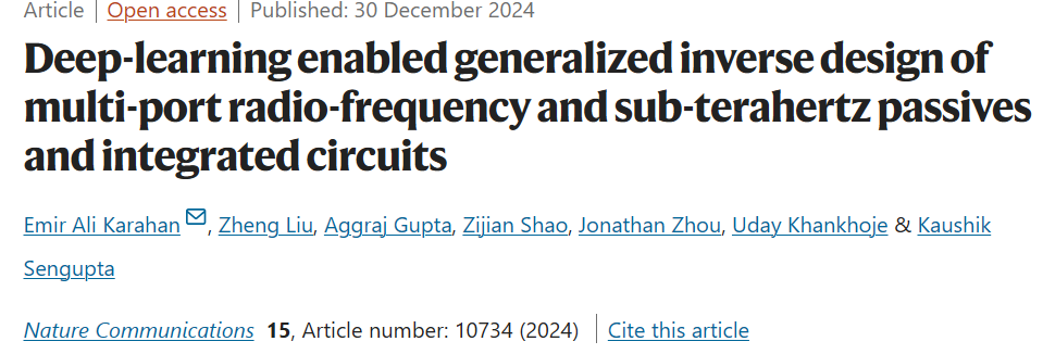 他们的研究结果以「Deep-learning enabled generalized inverse design of multi-port radio-frequency and sub-terahertz passives and integrated circuits」为题,于 2024 年 12 月 30 日刊登于《Nature Communications》。