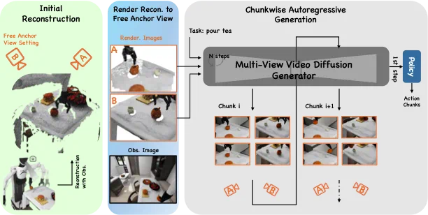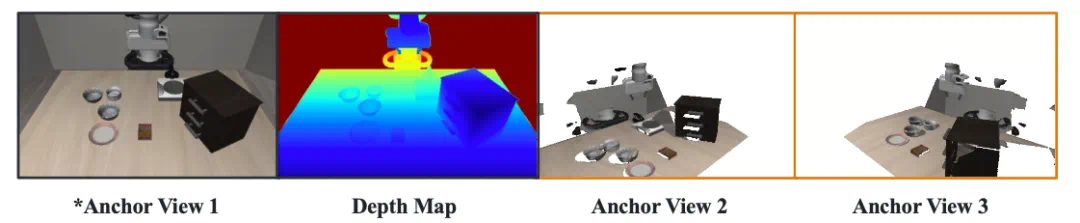 自由设定视角:FAV 支持动态调整锚定视角,克服固定多视角(fixed multi-anchor view)在狭窄场景中的局限性。例如,在厨房等场景中,FAV 可轻松适应动态遮挡关系。 -