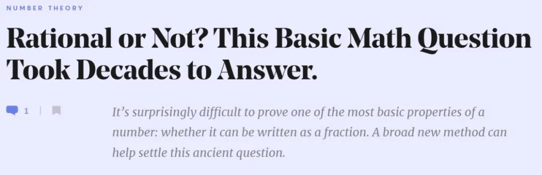 我们都知道,实数分为有理数和无理数,它们的定义也都很明确。但令人惊讶的是,其实很难证明一个数究竟能否写成分数形式。而现在,这个古老的问题有了一种广泛适用的新方法。