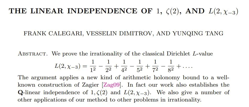 文章来源于互联网:如何证明一个数是无理数?他们找到了欧拉和黎曼错过的证明,华人数学家唐云清参与