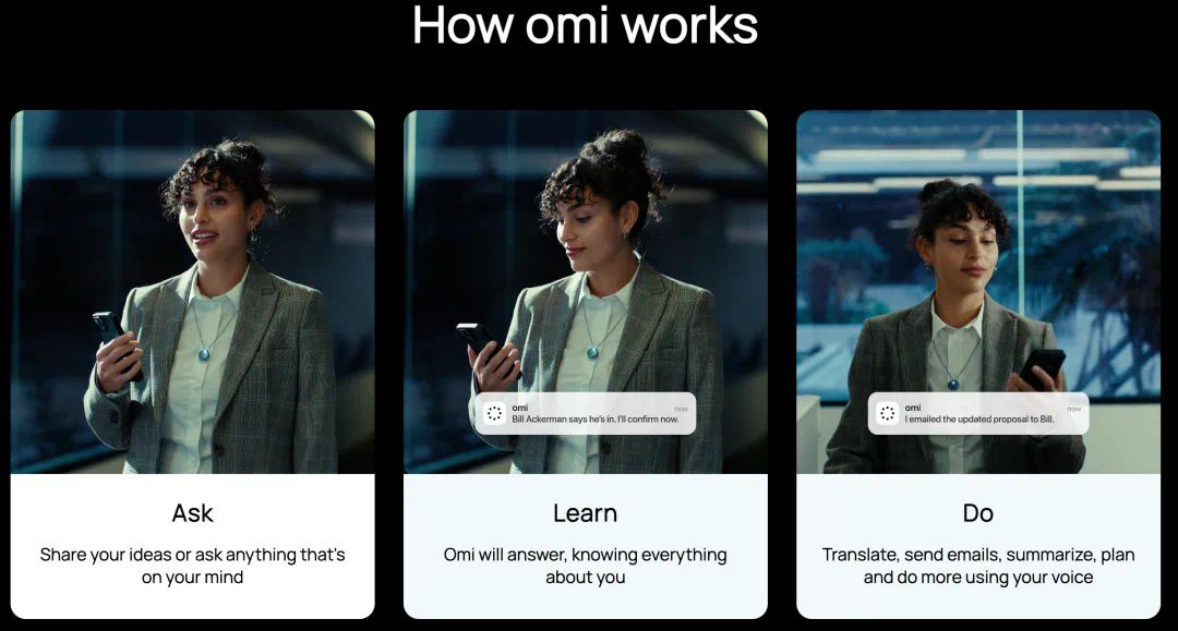 据介绍,Omi 可以回答问题、总结对话、设置提醒、安排会议、翻译对话以及创建待办事项清单。