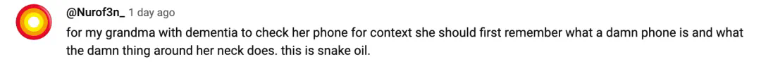 但是,对患有老年痴呆症的老人来说,要让他们查看手机以获取上下文信息,他们得先记得手机到底是个什么东西,以及他们脖子上的那个玩意到底是干啥用的。