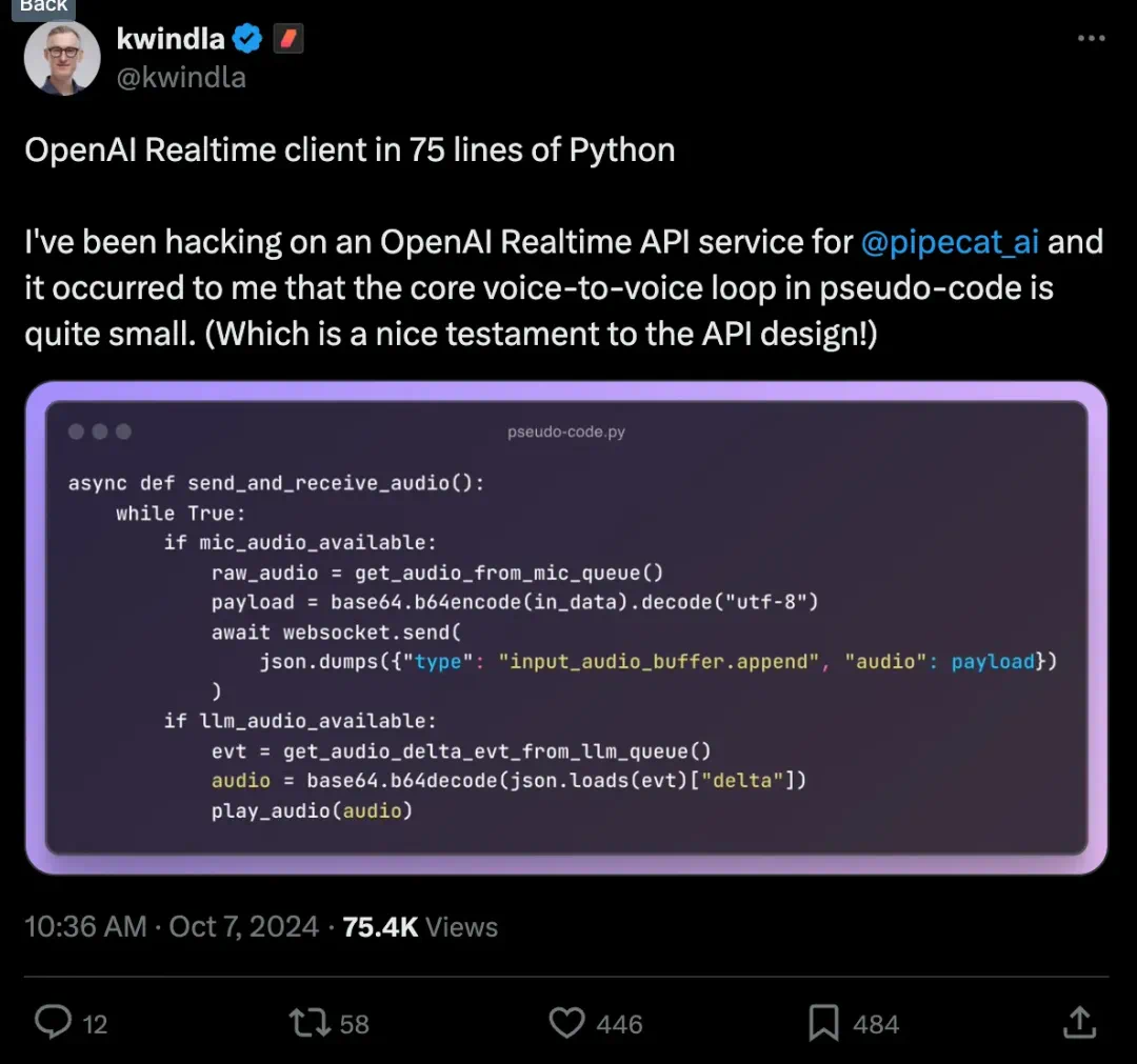 最近,我写了关于 Realtime API 的优点、我认为还需要一篇博客来讲如何有效使用 Realtime API 。无论你是工程师还是开发者,都希望能从这篇博客找到一些有用的背景信息、代码片段,和可以节省你时间的具体细节。