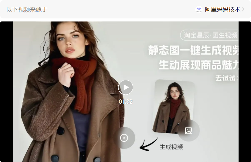 文章来源于互联网:从今以后,所有淘宝天猫商家都能一键图生视频了
