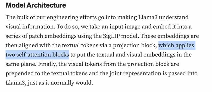 但 Llama3V 在论文中的介绍却说其采用了两层自注意力机制: