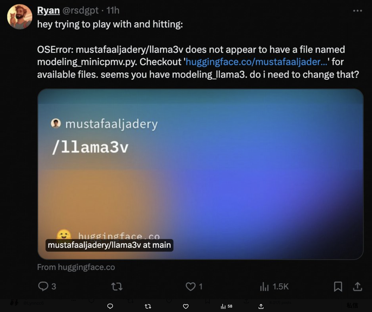面对网友的质疑,Llama3V 作者只是避重就轻地回复,称他们只是使用了 MiniCPM 的配置来解决 Llama3V 的推理 bug,并称「MiniCPM 的架构是来自 Idéfics,SigLIP也来自 Idéfics,他们也只是追随 Idéfics 的工作」而非 MiniCPM 的工作,因为「MiniCPM 的视觉部分也是来自 Idéfics 的」——