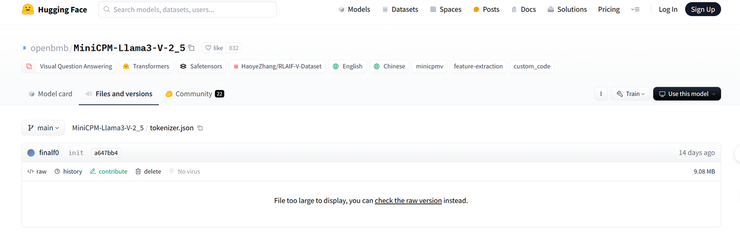 但事实是,据 AI 科技评论向面壁团队了解,MiniCPM-V-2 的 tokenizer 与 MinicPM-Llama3-V2.5 完全不同,在Huggingface 里是两个文件,「既不是同一个 tokenizer 件,文件大小也完全不同」。