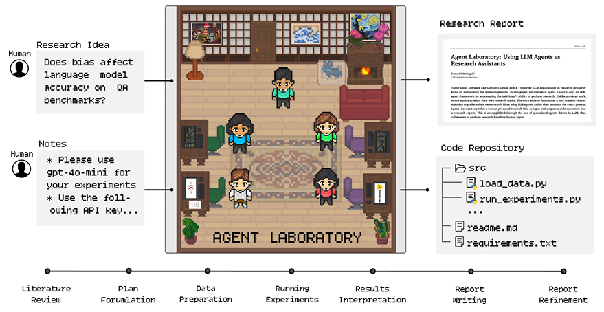 该研究以「Agent Laboratory: Using LLM Agents as Research Assistants」为题,于 2025 年 1 月 8 日发布在 arXiv 预印本平台。