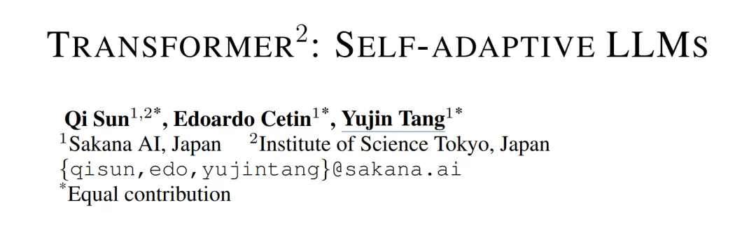 论文标题:TRANSFORMER2 : SELF-ADAPTIVE LLMS -