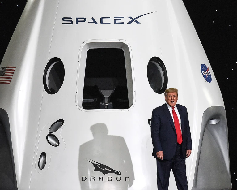 图示:唐纳德·特朗普于 2020 年在 SpaceX 的 Crew Dragon 飞船中首次发射 NASA 宇航员后。(来源:原文)