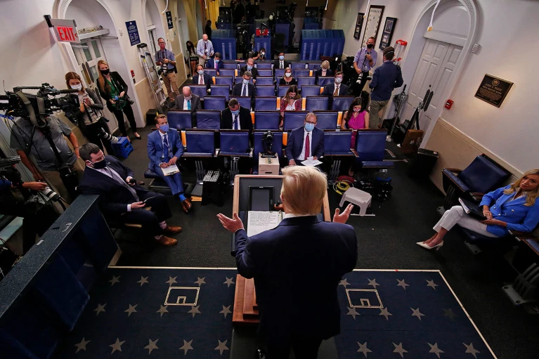 图示:特朗普在 2020 年 7 月的白宫新闻发布会上发表讲话。(来源:原文)