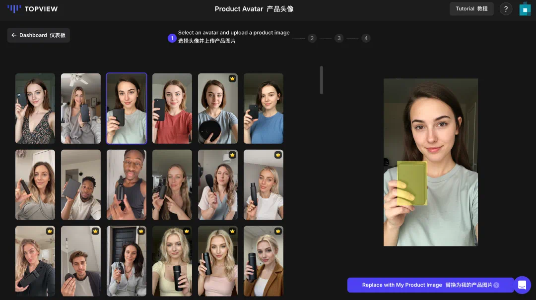 使用它新上线的「Product Avatar」功能,无需真人模特,只需上传一张产品图片,数字人即可手持产品进行口播展示。