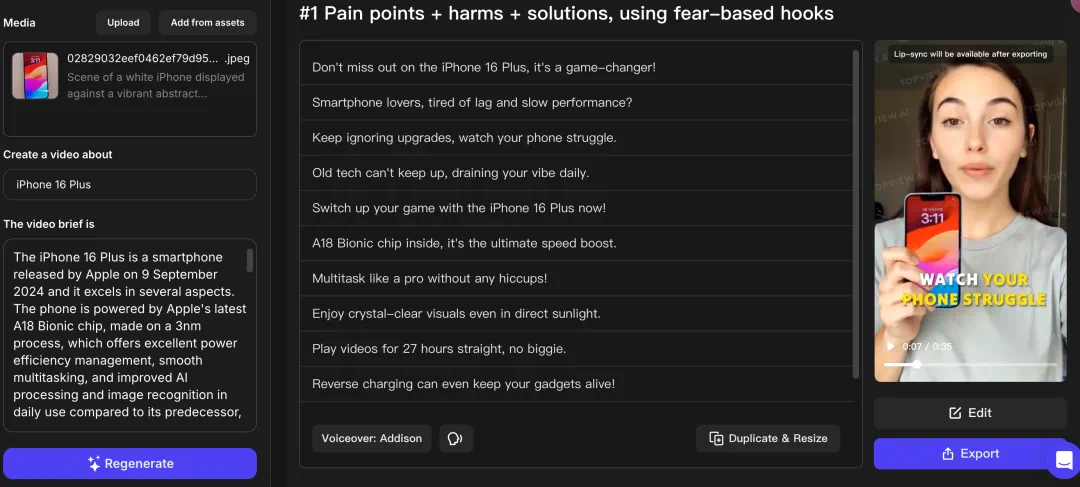 然后重复第一部分的操作,就可以随意更改文案,进行产品口播了。