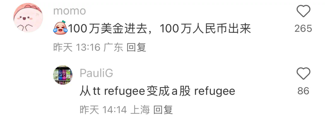 评论区也有不少「瞎说」大实话的,入大 A 股,100 万美金进去,100 万人民币出来😂