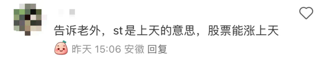 还要糊弄老外,ST 不是退市,是股票涨上天的意思,这是把国际友人当「进口韭菜」了: