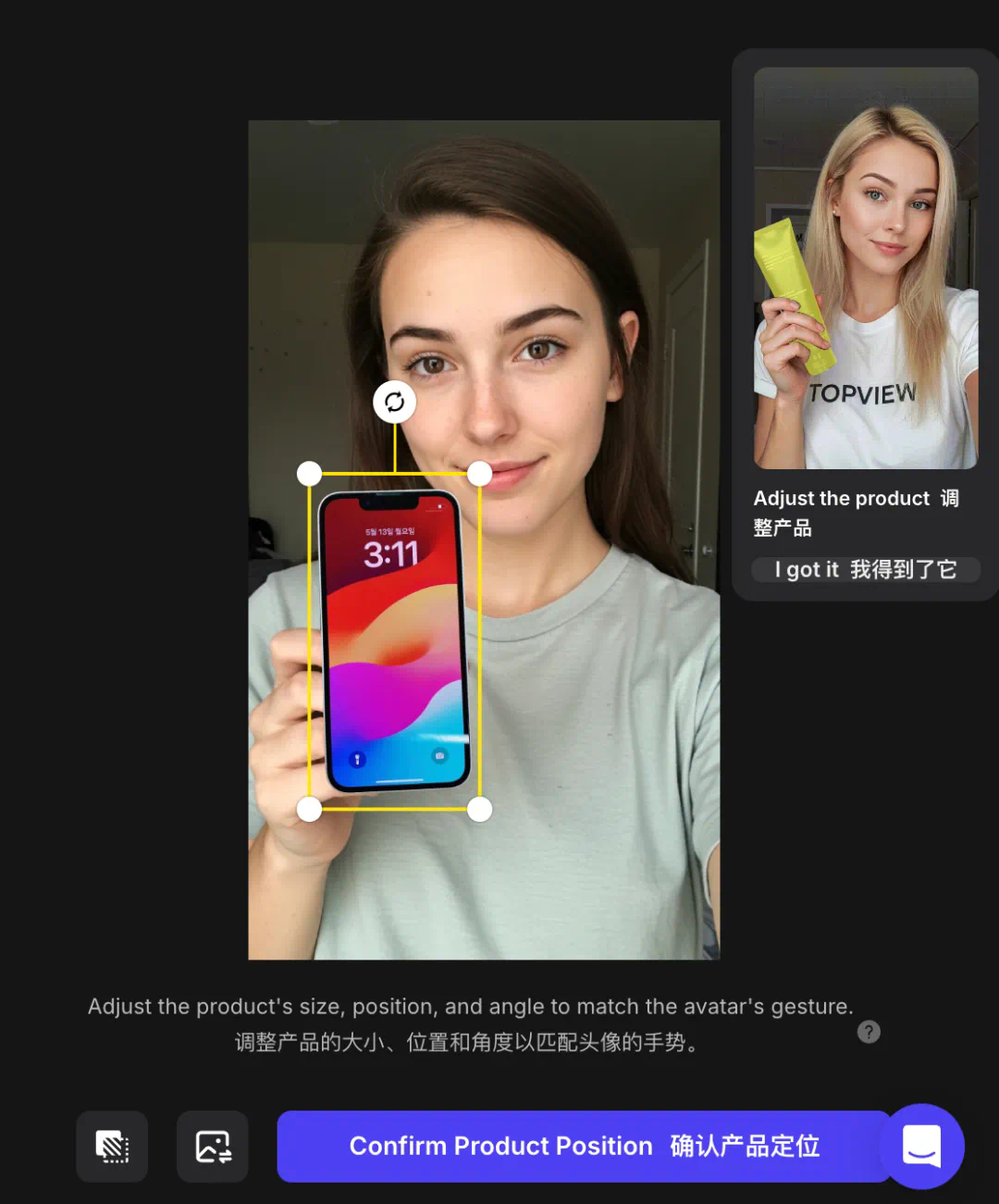 此外,它还上线了世界上第一个「手持产品数字人」的功能。