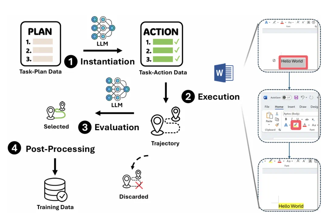 文章来源于互联网:无直接数据可用,AI怎么学会「干活」?微软团队揭秘AI从语言到行动的进化之路
