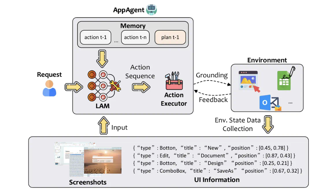 动态规划与适应,能够分解复杂任务,灵活应对环境变化,实时调整计划以完成目标。这些特性使 LAM 在复杂任务执行中表现出色。