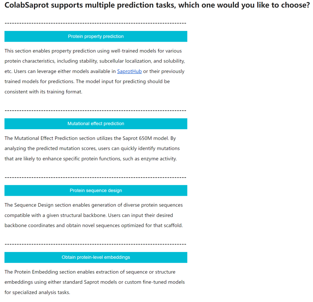 图示:ColabSaprot 支持多种预测任务。(来源:ColabSaprot 平台截图)