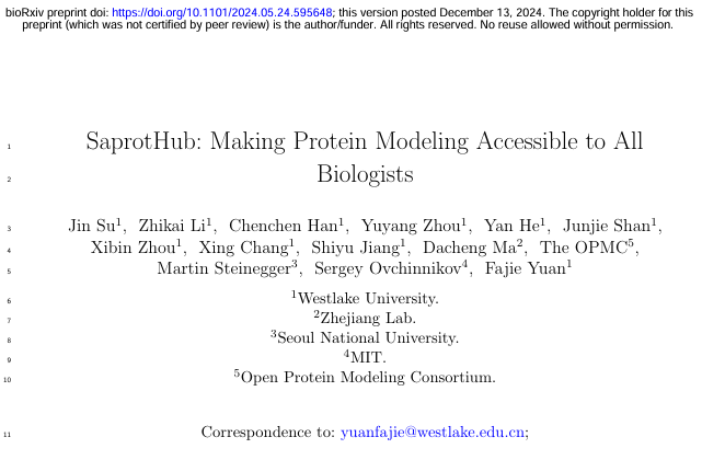 该研究以「SaprotHub: Making Protein Modeling Accessible to All Biologists」为题,于 2024 年 12 月 13 日更新在 bioRxiv 预印本平台。