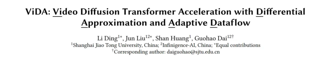 就在刚刚,集成电路设计自动化领域的国际传统顶级会议之一的 ASP-DAC(Asia and South Pacific Design Automation Conference, 亚洲及南太平洋设计自动化会议)在日本东京落下帷幕。在 ASP-DAC 成立 30 周年之际,今年的前端最佳论文奖颁发给了《ViDA: Video Diffusion Transformer Acceleration with Differential Approximation and Adaptive Dataflow》—— 由无问芯穹与上海交通大学联合研究团队提出的视频生成软硬一体加速器,首次实现通过差分近似和自适应数据流解决 VDiT 生成速度缓慢瓶颈,推理速度相比 A100 提升高达 16.44 倍。