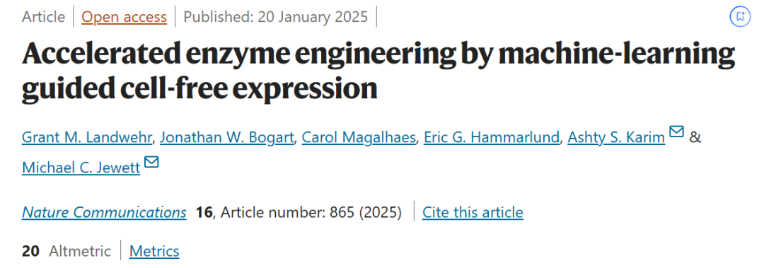 该研究以「Accelerated enzyme engineering by machine-learning guided cell-free expression」为题,于 2025 年 1 月 20 日发布在《Nature Communications》。