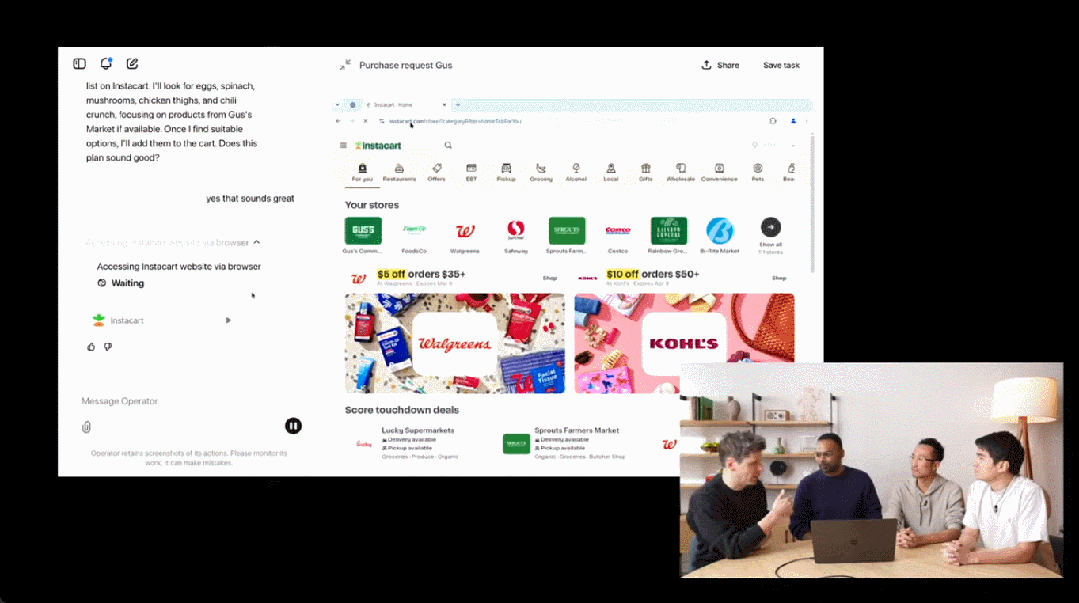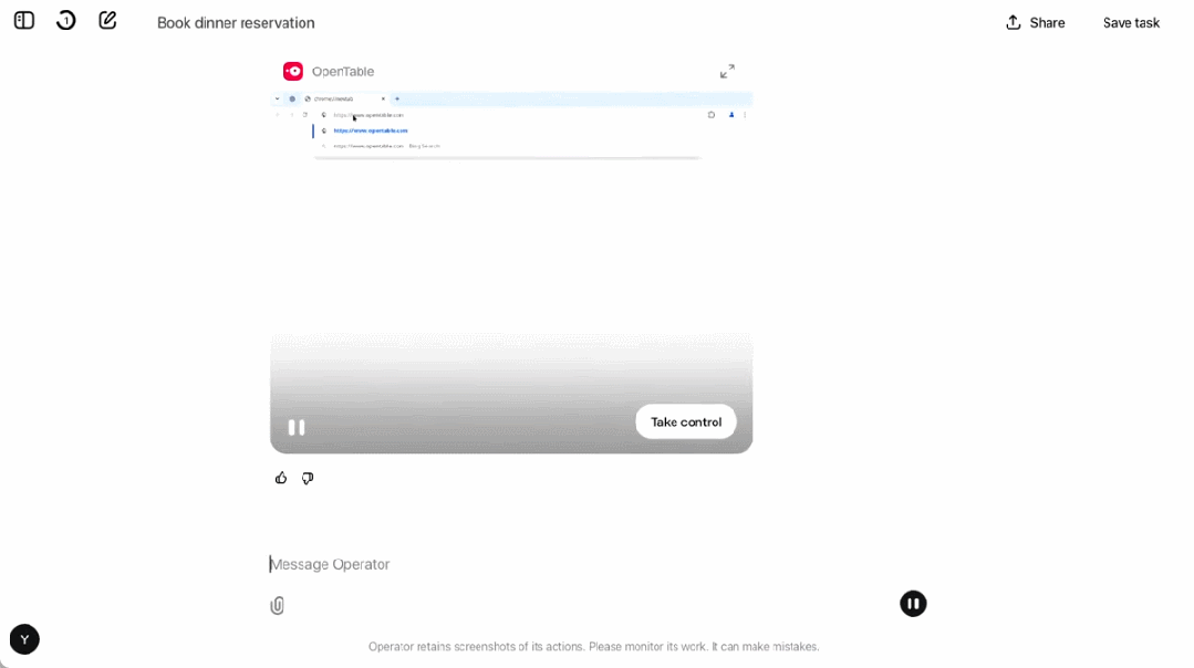 用户确认:在完成任何重要操作(例如提交订单或发送电子邮件)之前,Operator 会征求批准。 -