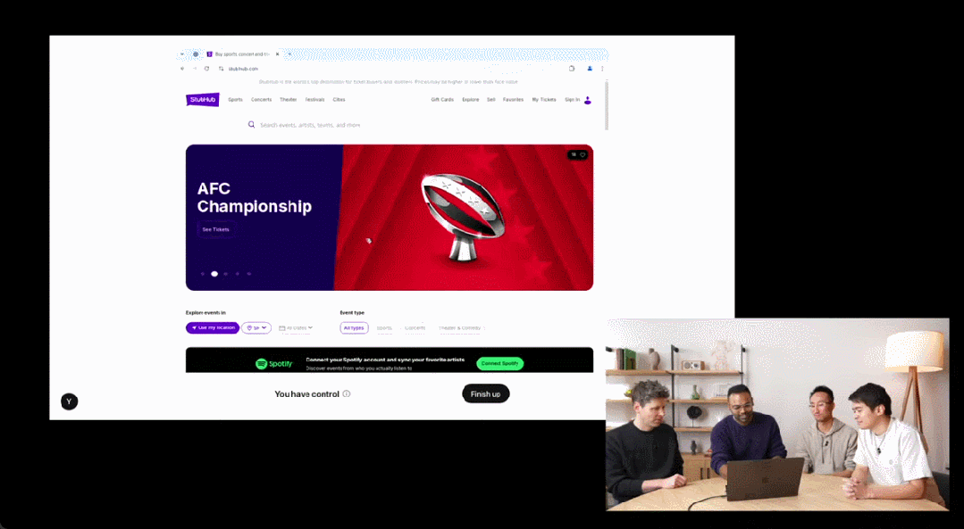 行动:执行操作(单击、滚动或键入),直到它决定任务已完成或需要用户输入。虽然它会自动处理大多数步骤,但 CUA 会寻求用户确认敏感操作,例如输入登录详细信息或响应 CAPTCHA 表单。