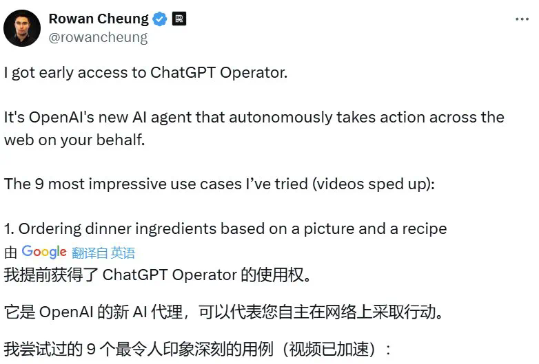 文章来源于互联网:刚刚,OpenAI正式放出智能体Operator!能推理、联网自主执行任务