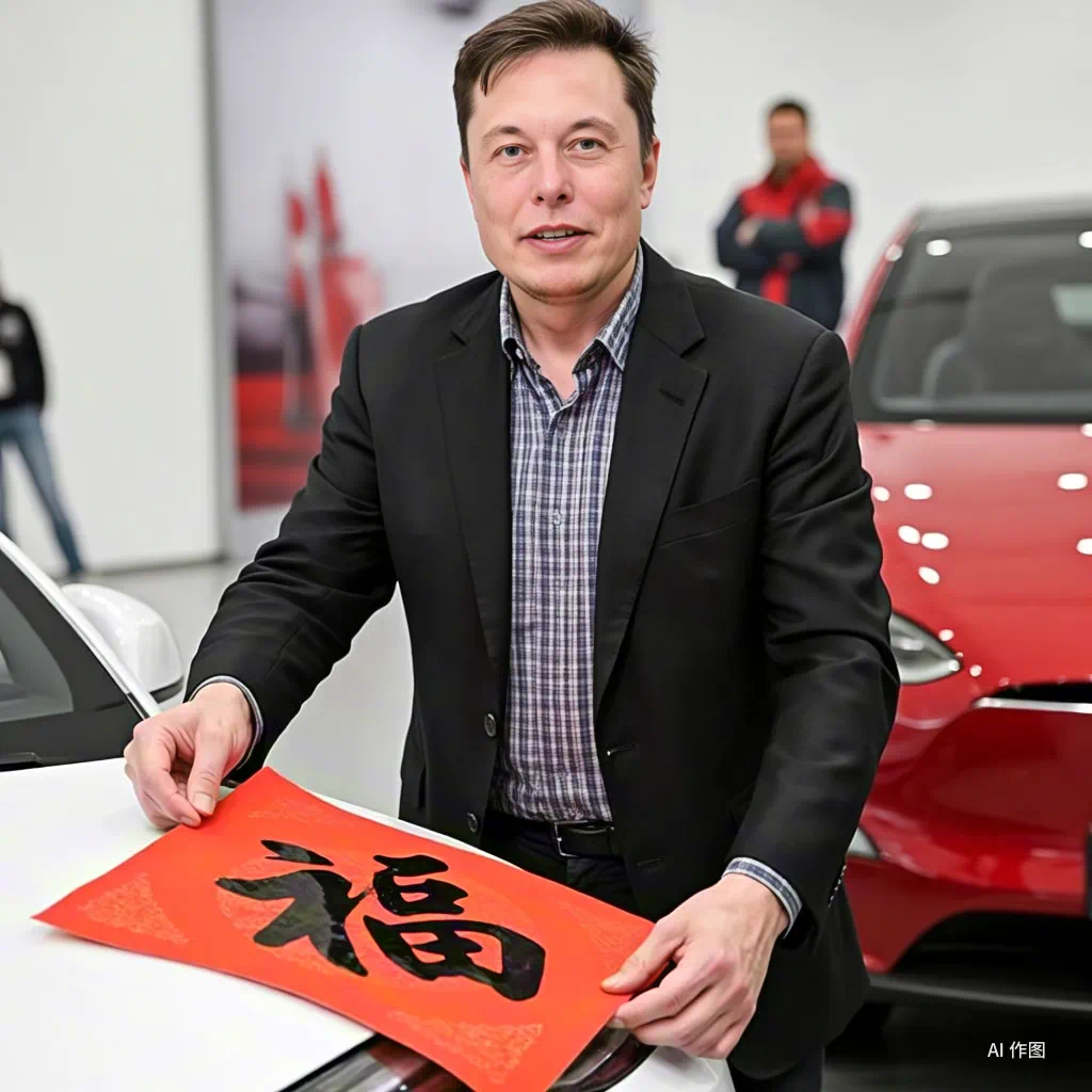 比如,让「硅谷钢铁侠」马斯克给特斯拉贴福字: