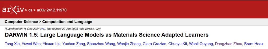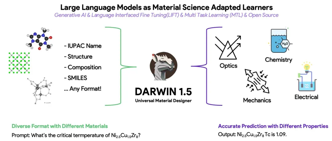 文章来源于互联网:DARWIN 1.5 来啦!材料设计通用大语言模型,刷新多项实验性质预测记录