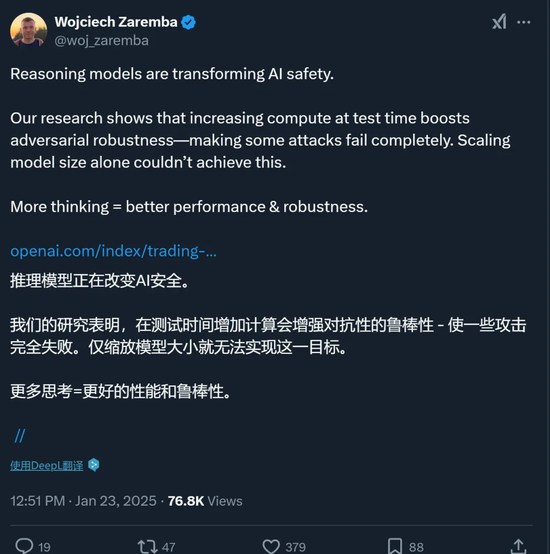通过投入更多计算资源,AI 系统的准确性和可靠性可以显著提升,这将增强用户对 AI 的信任,推动商业化应用。