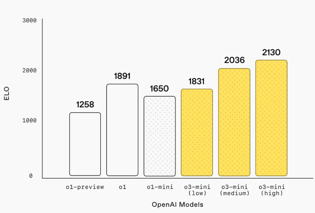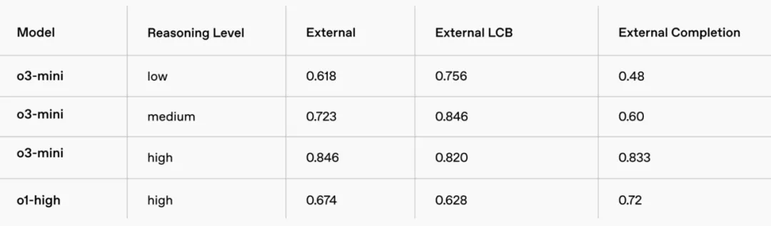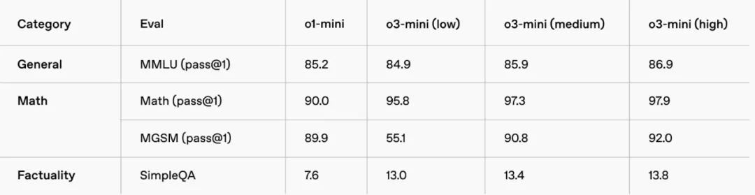 此次发布,o3-mini 包含 low、medium 和 high 三个版本。