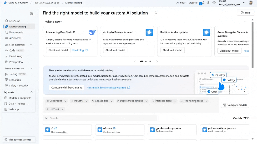 今天一觉醒来, DeepSeek R1 模型已经正式加入 Azure AI Foundry 和 GitHub 模型目录,开发人员可以快速地进行实验、迭代,并将这款热门模型集成到他们的工作流程中。