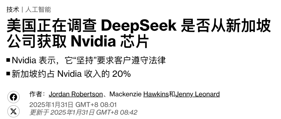 图源:https://www.bloomberg.com/news/articles/2025-01-31/us-probing-whether-deepseek-got-nvidia-chips-through-singapore
